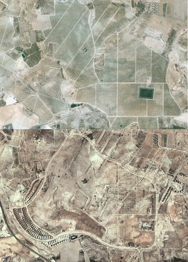 La imagen de abajo es un claro ejemplo de esta contaminación. Es la urbanización de Las Lamparillas en Murcia. En las imágenes de satélite se puede observar el cambio del uso y la pérdida de suelo debida a esta construcción, además inacabada.