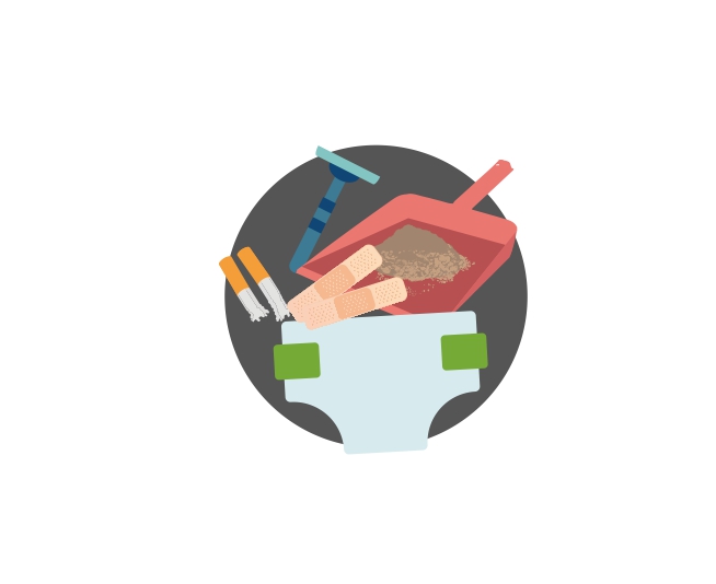 Bastoncillos, pañales, compresas, tampones y otros residuos de aseo personal